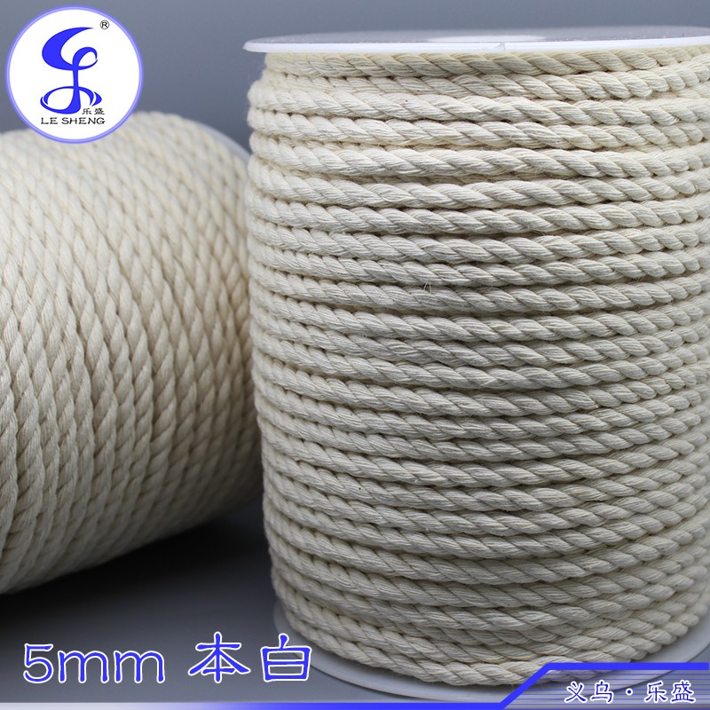 5Mm Tapestry Rope Hand-Woven Rope Three Strands Twisted Rope Twist Rope Environmental Pure Cotton White Gyro Rope